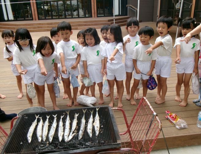 さくら組さんは、炭で焼いたさんまを丸々一匹いただきました(^^)/