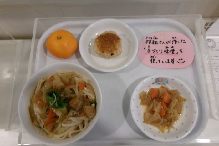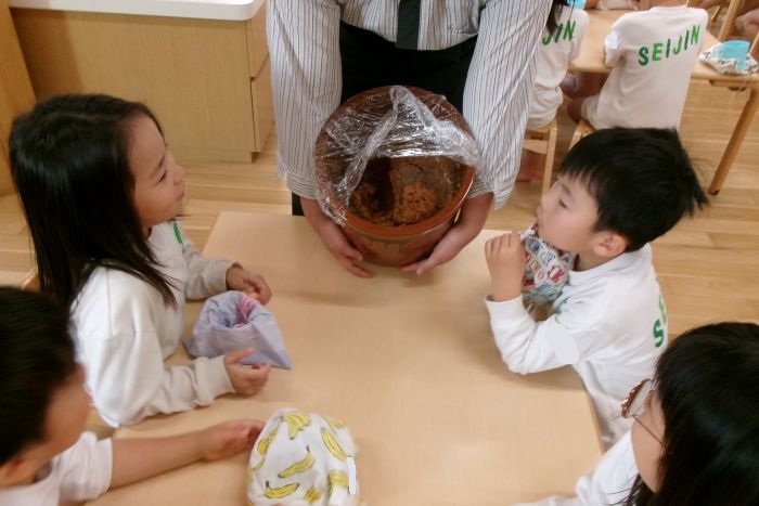 今年のさくら組さんが自分たちで作った味噌の香りを楽しみます。