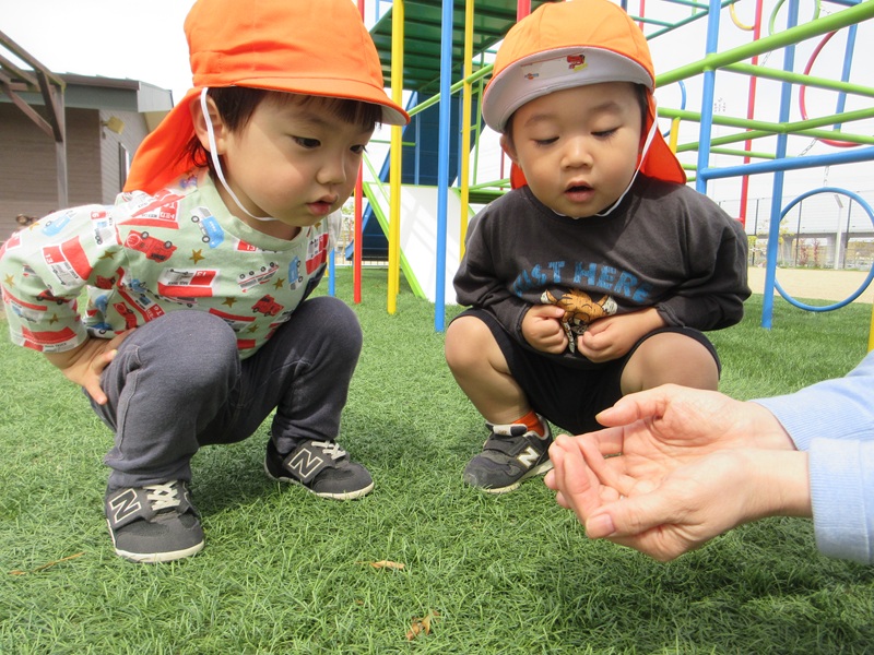 「見て!」「こっちにも咲いてる!」「いっぱい捕まえた!」とたくさん春を見つけて嬉しそうな子どもたちでした!