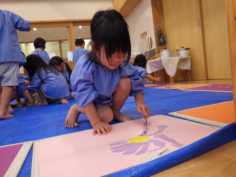 いろいろな色を使って、のびのびと自分なりのお花を表現していましたよ。