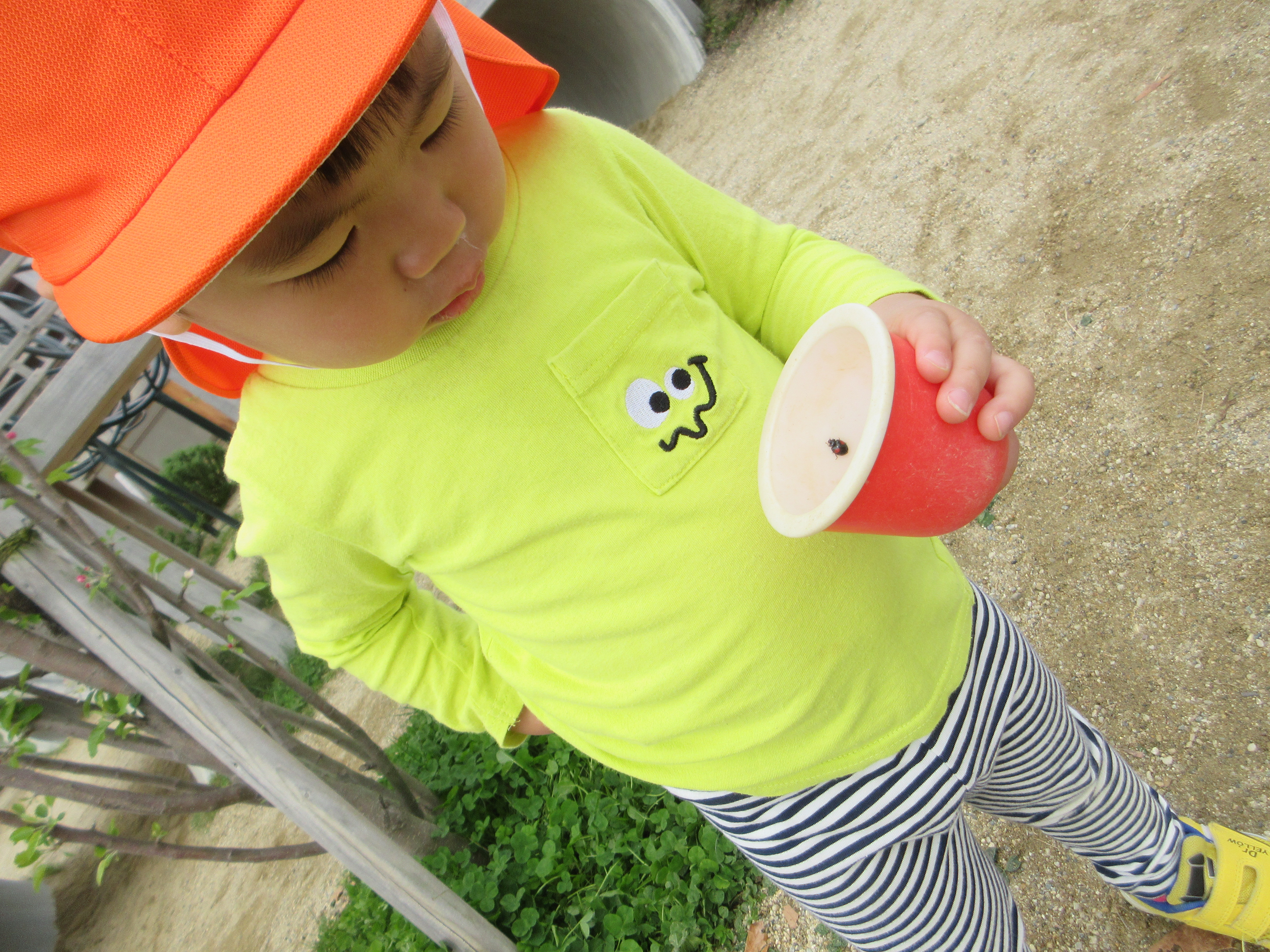 てんとう虫を見つけるとカップに入れて「順番で見ようね」「はい、どうぞ」とお話も楽しんでいます!