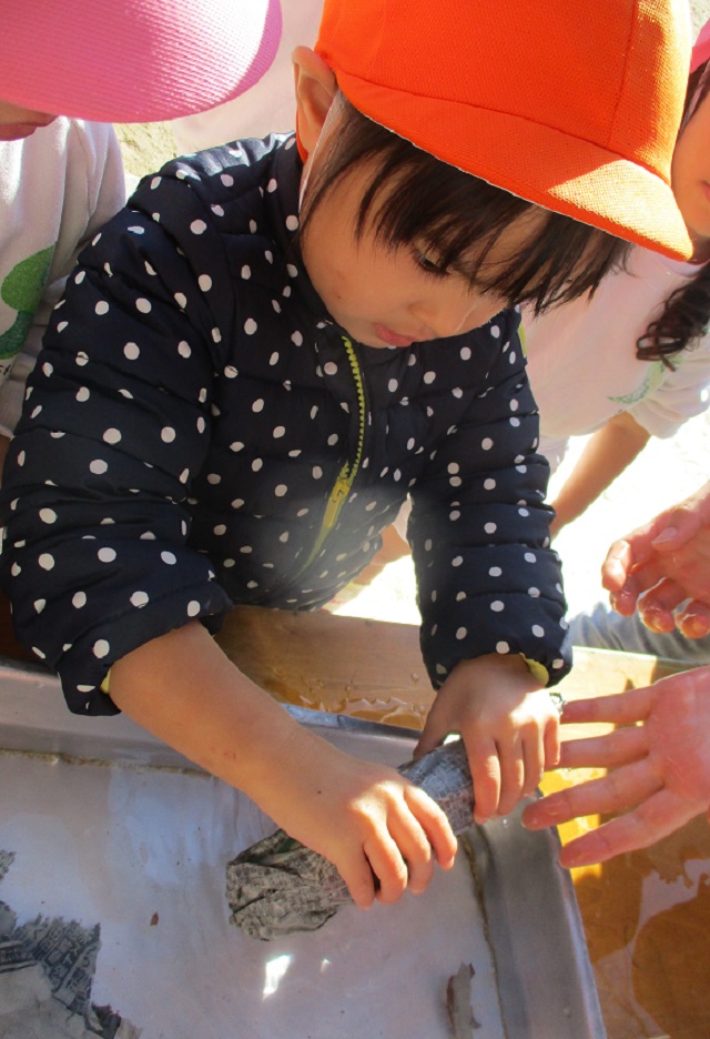 お砂場では、お山の作り方を先に作っていたお友達に聞き、一緒に大きなお山を作って楽しんでいましたよ☆