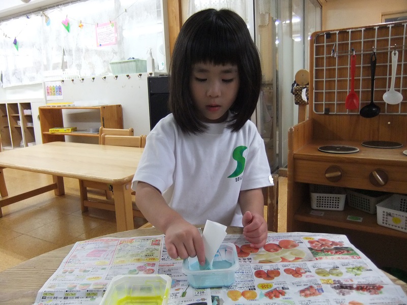 好きな色のチームでしたり、4歳と5歳で分かれて勝負をしたり…