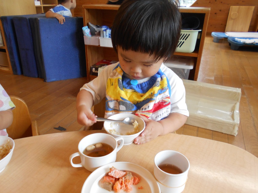 「綺麗だね」と皆で観察したり、手のひらにのせてふーっととばしたり、お砂のケーキにトッピングしたりと、楽しみました♪そして、銀杏も見つけて、実をむいて匂いをかいでみると、眉をしかめたり、不思議な匂いに驚きの様子でした(^^)