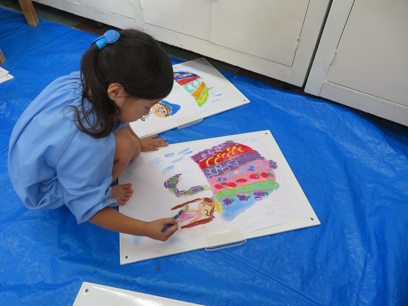 - ステキなうちわがもうすぐ完成します!(4.5歳児)