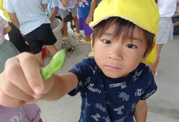 園庭に出ると、「なんかいいにおいする」ともち米の匂いに興味をしめす子どもたち♪