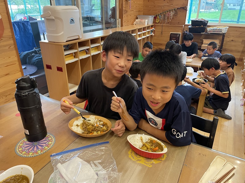 - 始業式の今日、学校から帰ってきた子どもたちとおもちつきをしました。みんなの力が必要なおもちつき。もち米をつぶしたり、杵で突いたり、子どもたちがそれぞれの場面で活躍しました。特に高学年は力強くもちをついてあっという間におもちまで仕上げていました。おもちは醤油やきな粉、個々に好きな味付けで頂きました。