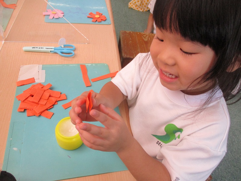 紙いっぱいにスタンプする子や、綺麗に並べて押す子・・・それぞれにさつまいもスタンプを楽しんでいました♪