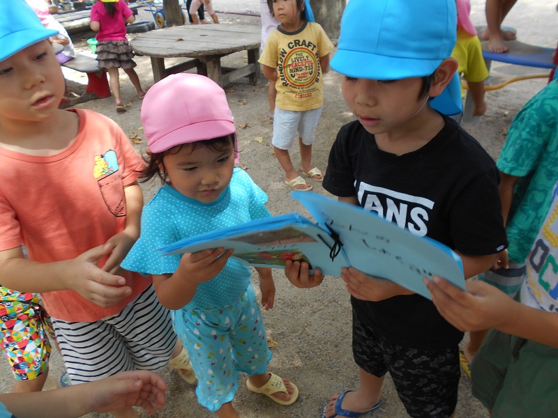 - 敬老の日を迎えるにあたって、自分のおじいちゃん、あばあちゃんにはプレゼントを作って送ったけど、他にもたくさん周りには自分たちを見守ってくれているおじいちゃん、おばあちゃんがいることに気づいた子ども達。そんなおじいちゃん、おばあちゃんにもプレゼントを作って日頃の感謝を伝えて渡すことにしました。園の前の直売所のおじいちゃんには直接渡すことができ、子ども達もおじいちゃんの「ありがとう」の言葉にニコニコすごく嬉しそうでした!地域の方とのつながりも感じられる日となりました。