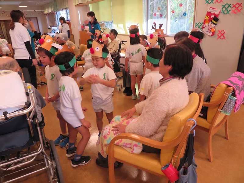 4歳児はアイスクリームのうちわ、5歳児ははなびのうちわを作ったので、そのうちわを持って盆踊りを楽しみました!リズムに乗って上手に踊っていましたよ♪
