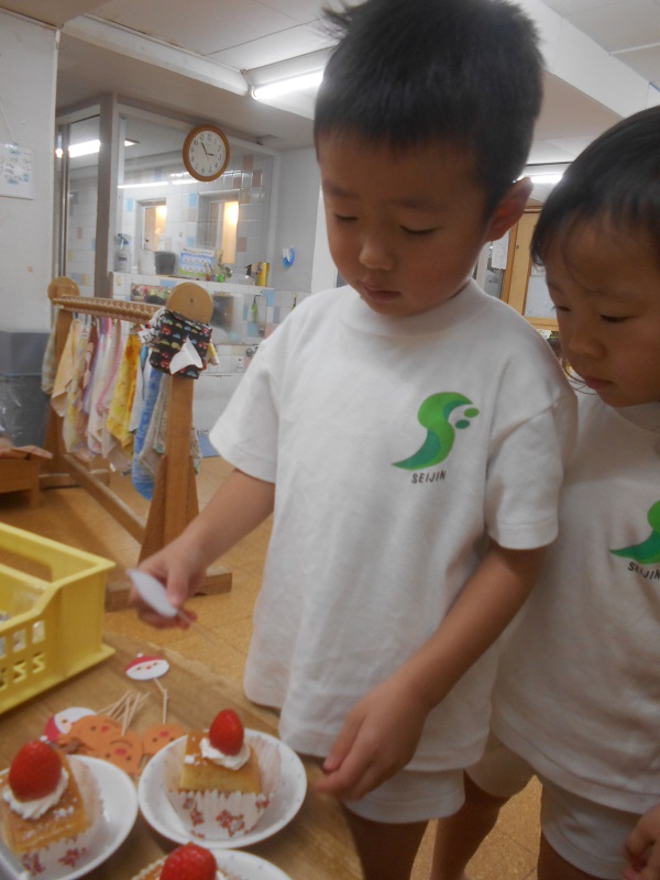 お店屋さんの中の一つ、魚釣りコーナーに使う魚の製作あそびを楽しみました。