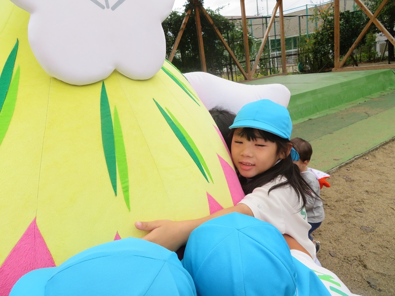 - 桜組とのお別れ会でミニ運動会をしました。チームごとに分かれ玉とりリレー等色々な競技を協力して楽しみました!桜さんのバルーンはやっぱりかっこよくてみんな真剣に見入っていましたよ、運動会の後はみんなのだいすきなメニュー、からあげ、ポテトサラダ等、おなか一杯においしくいただきました!