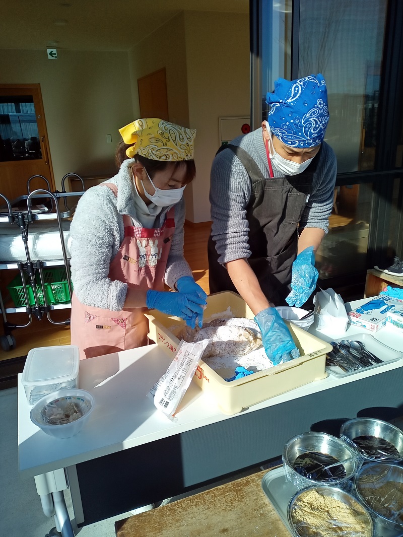 - 梅林園の方々がサプライズの訪問!利用者の方々が作られた、大きなてるてる坊主とリースをいただきました。お部屋に大切に飾られてもらいます。梅林園の方々、ありがとうございました。