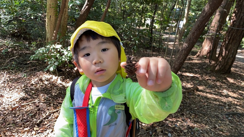 - ガチャポンプで水を汲んで容器に入れ、その中に石や葉っぱなど、好きなものを入れて、凍りそうな場所を探しました。「ここ凍りそう!」「こっちは?」と子どもたち同士で場所探しを楽しみ、場所が決まると「早く氷になあれ」とわくわくしながら眺めていましたよ♪