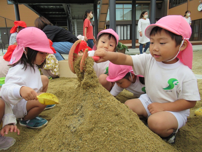 保育者に「かいっ!かいっ!」と声や身振り手振りで、”もう一回やって!”と上手に伝えてくれます。