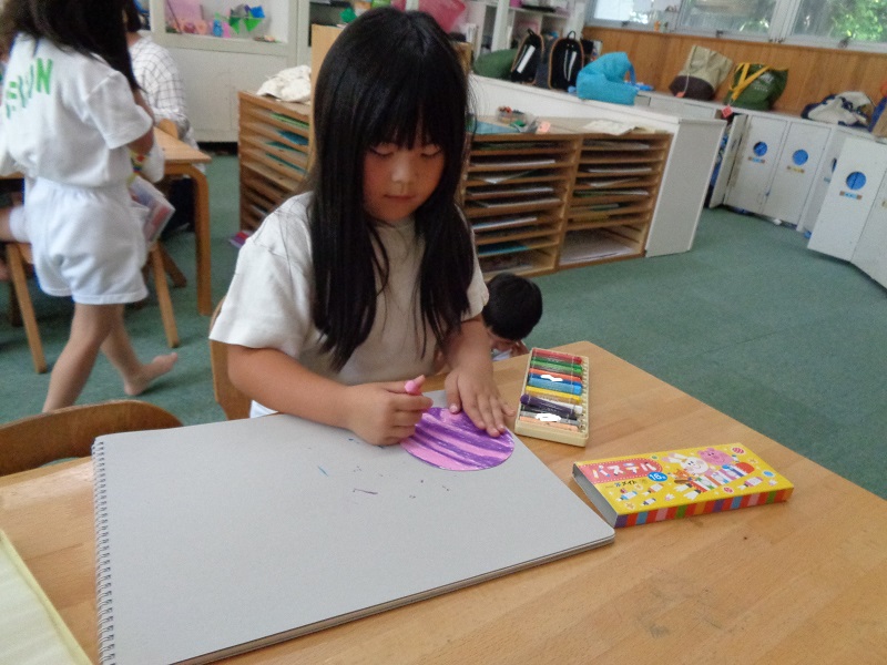 クレパスで色を混ぜ色の変化を楽しむ子ども達♪