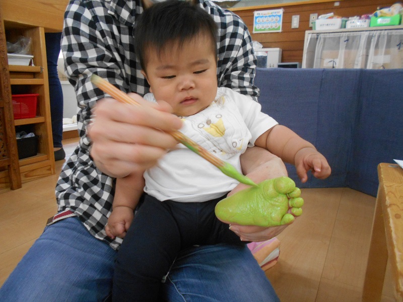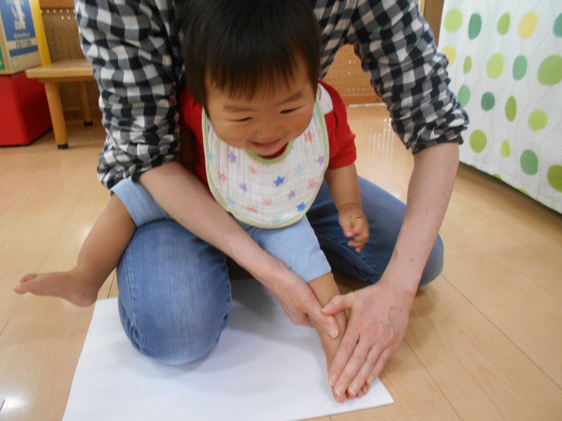 画用紙に自分の足型が出てくると、喜んでいましたよ!!